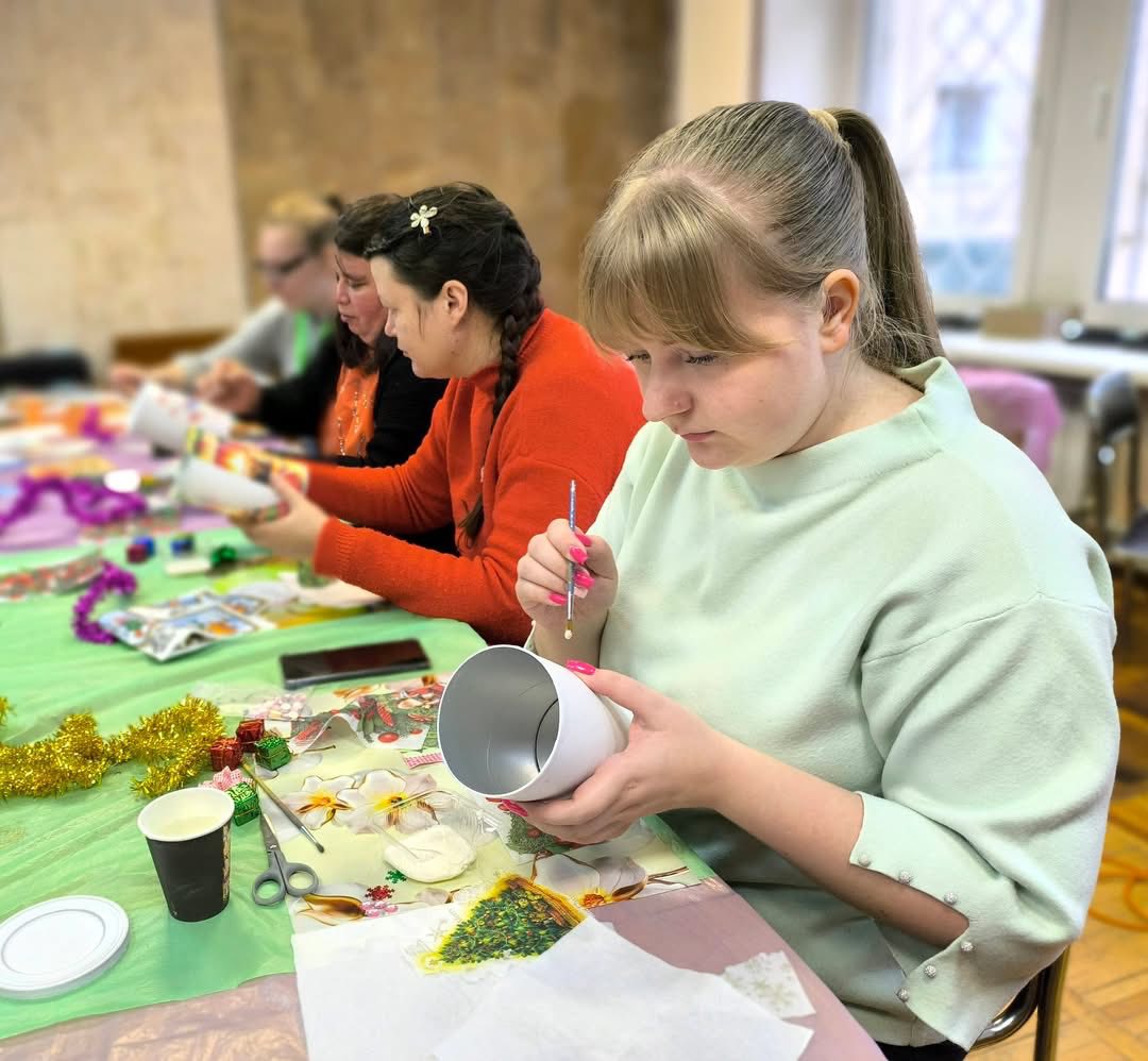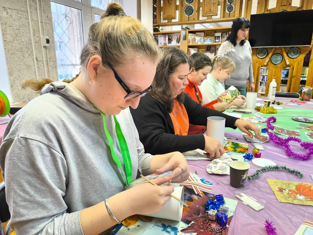 Культурно-мистецька асоціація «Арт-спокуса» запросила провести заняття майстриню Ганну Петрик. Учасниці створювали святкові скриньки — ємкості для цукерок або особливих подарунків. У хід пішли картонні коробки та безліч яскравих серветок із різдвяно-новорічними мотивами.