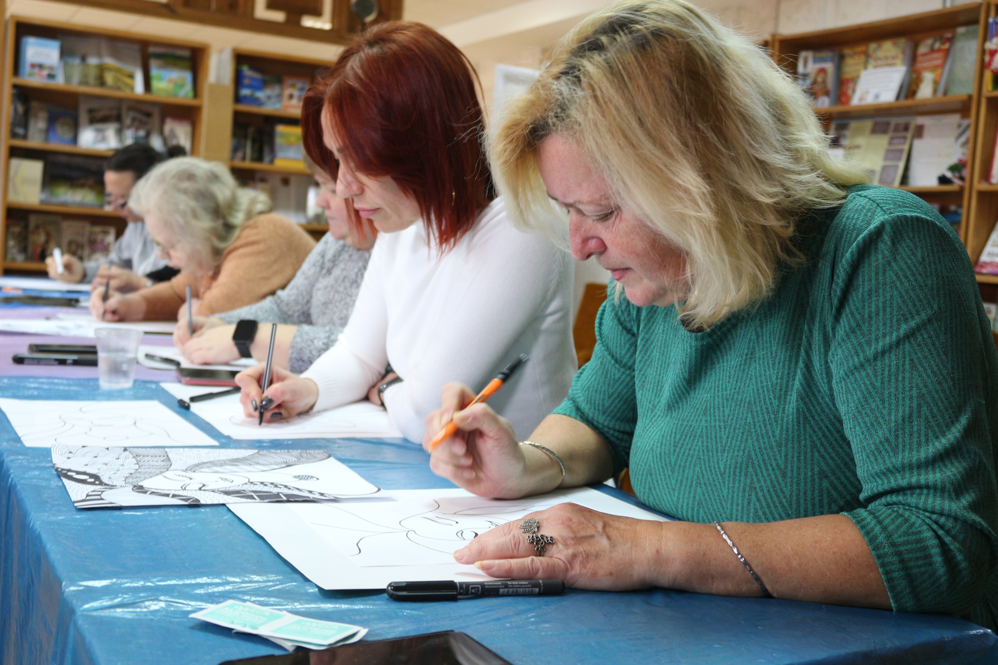 Створювати несвідомі малюнки Культурно-мистецька асоціація «Арт-спокуса» запропонувала й відвідувачкам майстер-класів, постійним читачкам Центральної міської бібліотеки ім. М.Л. Кропивницького.