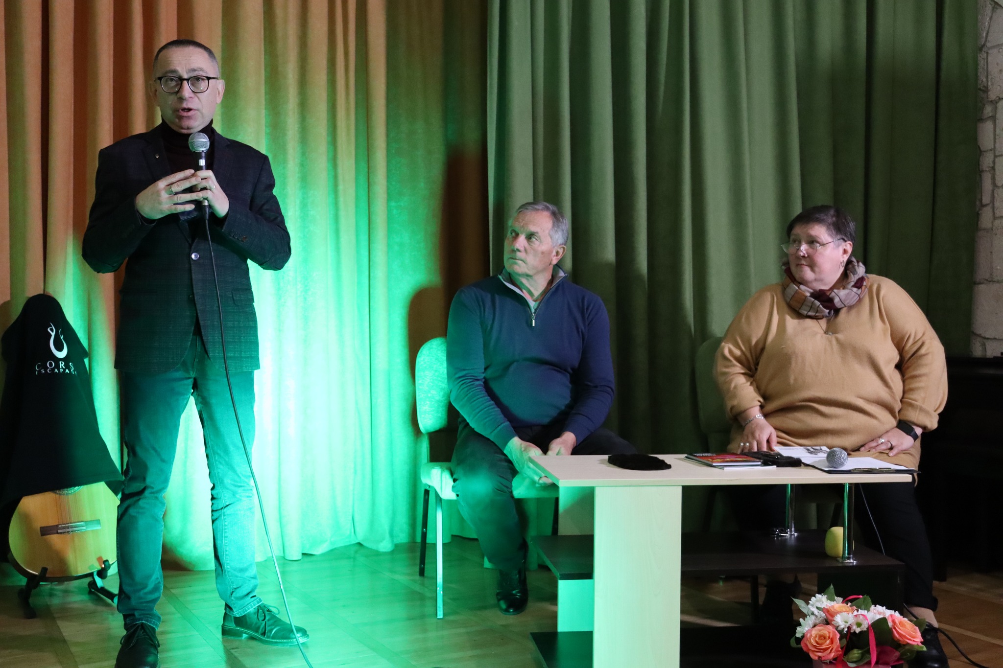 У музичній частині зустрічі звучали пісні у виконанні Анатолія Миронова під гітару та саксофон Олександра Семенова— на слова Дмитра Кременя. Особливим подарунком до 125-річчя бібліотеки стали цінні подарунки від пана Анатолія — вініловий альбом білого кольору (колекційний) та альманах із перекладами поезій Дмитра Кременя французькою та італійською мовами. Ці видання — символ творчої дружби та культурного діалогу між Україною і Європою.