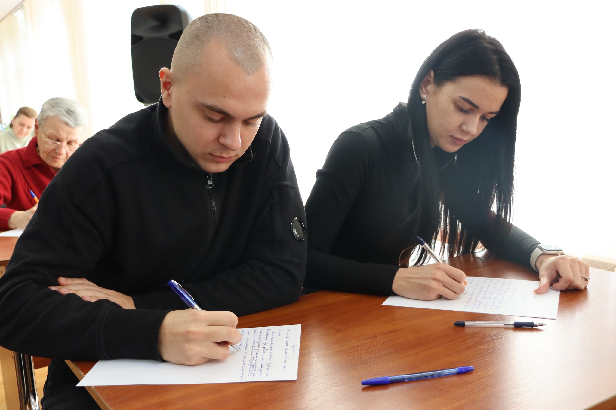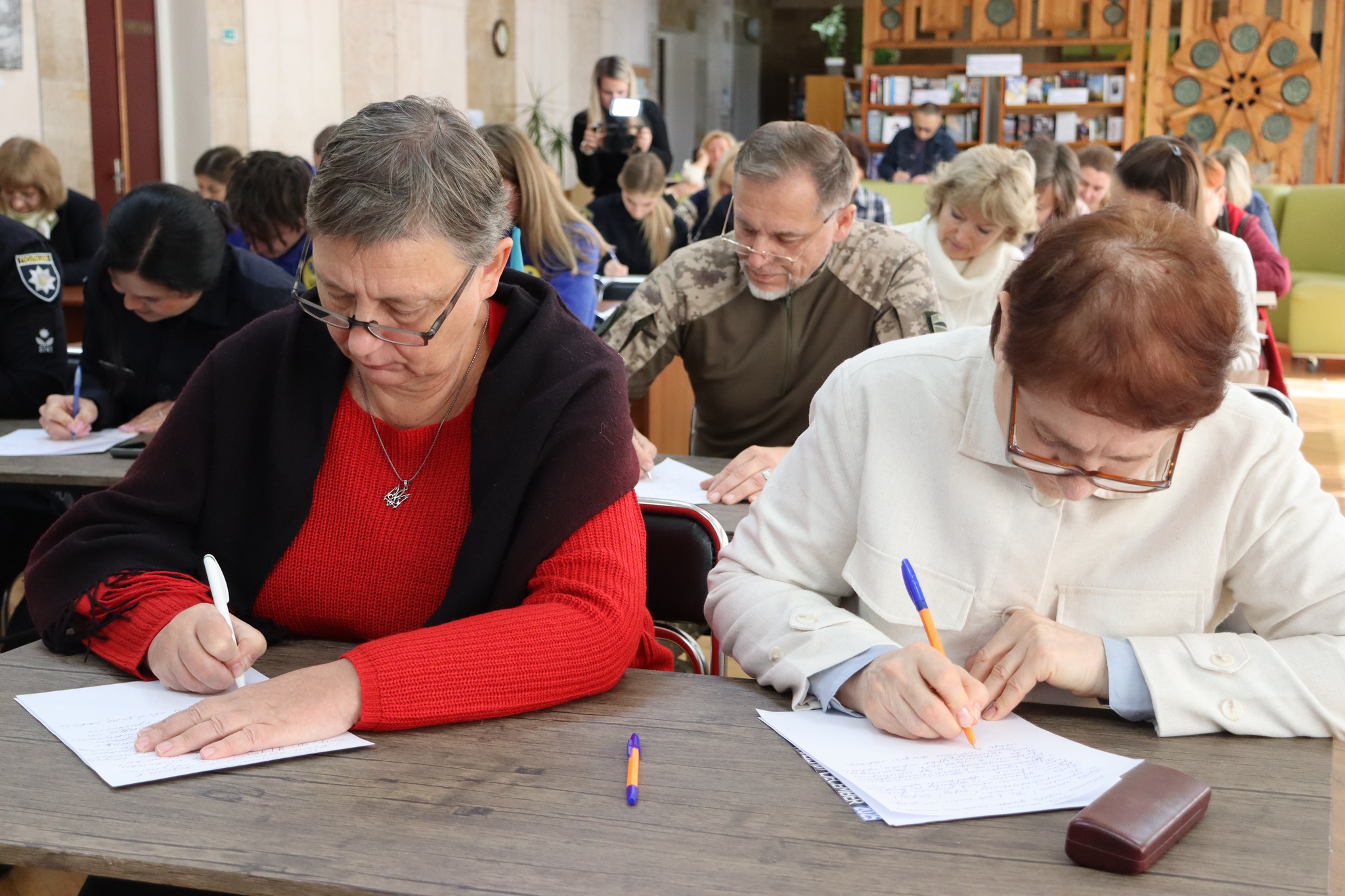 У Центральній міській бібліотеці ім. М. Л. Кропивницького до написання диктанту офлайн долучилися близько п'ятидесяти миколаївців.